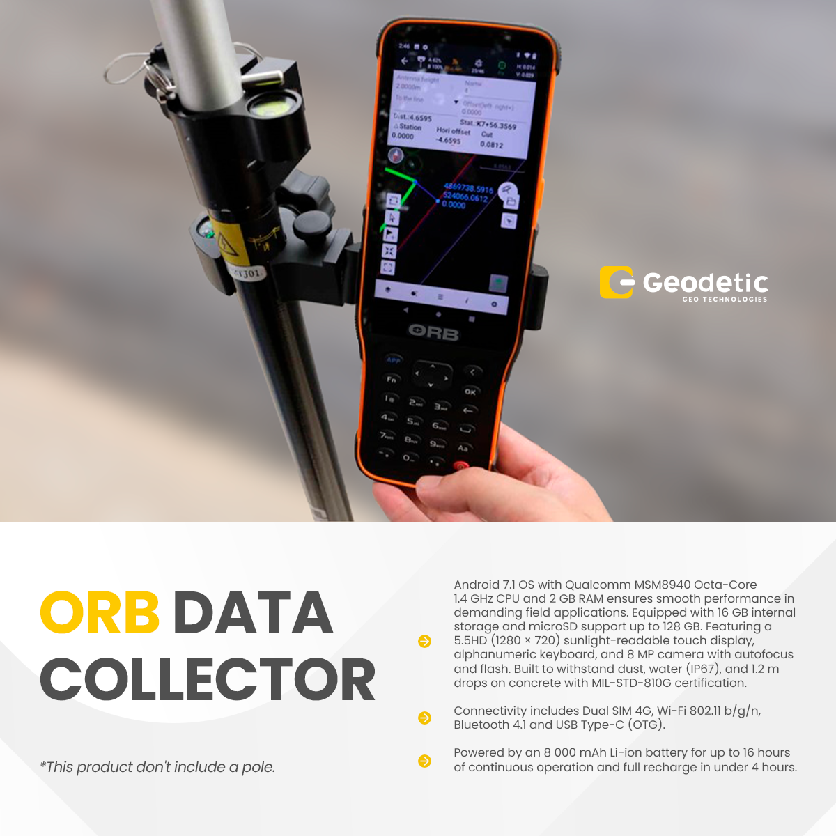 Geodetic ORB Ultra-rugged Android data controller with 5.5” HD+ display for different applications.